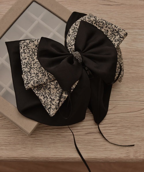 ブラックとボタニカルデザインのリボンが大人かわいいバンスクリップ