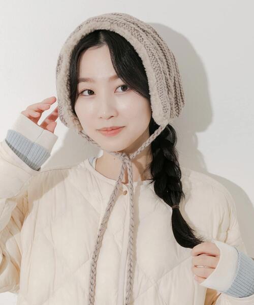 立体的なケーブル編みが、見た目にも温かなニットイヤーマフ。