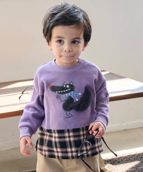 トラッドラインのモチーフキャラクター「オオカミ」のアップリケが可愛らしいトレーナーです。