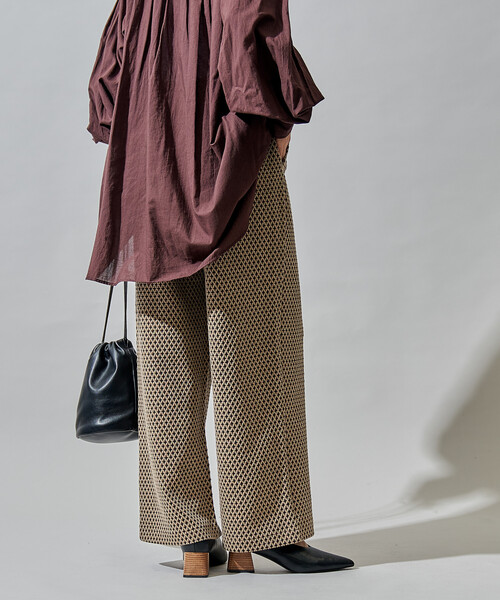 細かい柄が上品に映える、リラックス感たっぷりのジャカードパンツ●ゆったりとしたシルエットで、リラックス感のある穿き心地