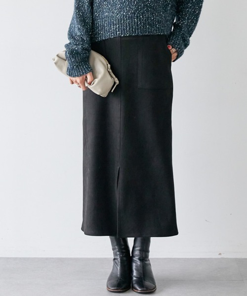 柔らかいスエード調素材で上品に仕立てたスカート。