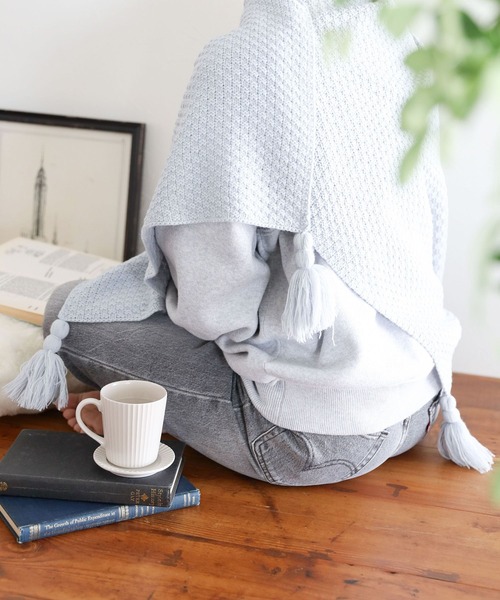 四隅に揺れるタッセルが、さりげないアクセントになったブランケット。