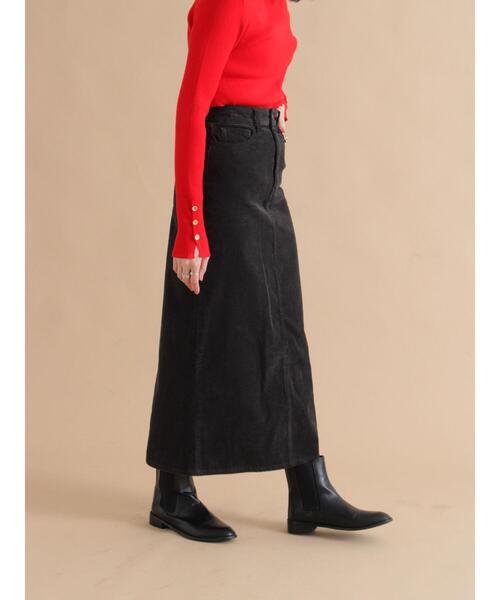 ソフトな風合いのコーデュロイ素材を使用した、ロングスカート。