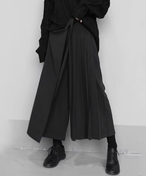 ミニマルな中に個性が光る、ラッププリーツワイドパンツ。