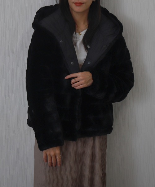 コート ブルゾン ファー キルティング ショート丈 リバーシブル 2WAY 暖かい フード フーディ 防寒 きれいめ オフィスカジュアル 秋 冬