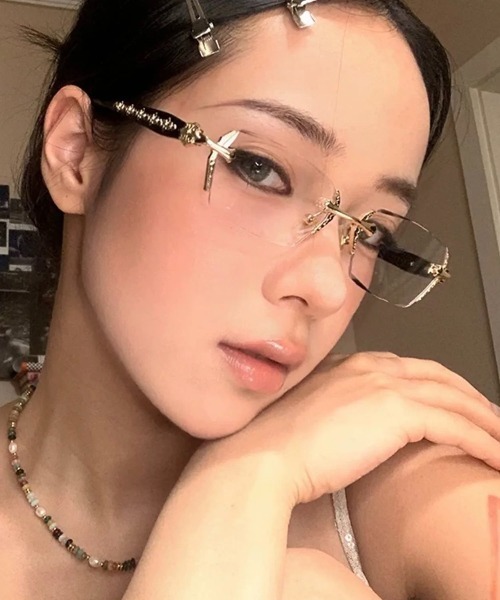 スクエア型のリムレスメガネです。