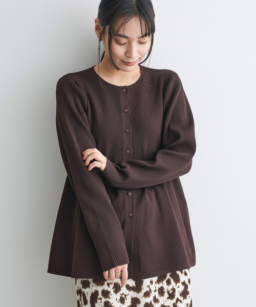 *上品な甘さとリラックス感を両立した、ペプラムチュニック。「軽やかでなめらかな素材」ポリエステル糸を12Gで編み上げ、さらっとした肌触りと適度なハリ感を実現。