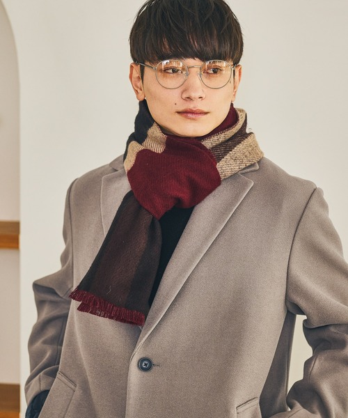 ブロッキングデザインが目を引くマフラー。