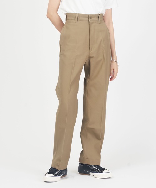 キーワード:チノパン レディース スタンダード センタープレス テーパード ハイウエスト フルレングス 無地