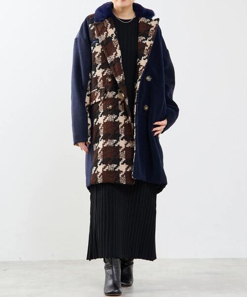 ビッグチェック、無地のダブルフェイス、ボア、シープフェイクファー、