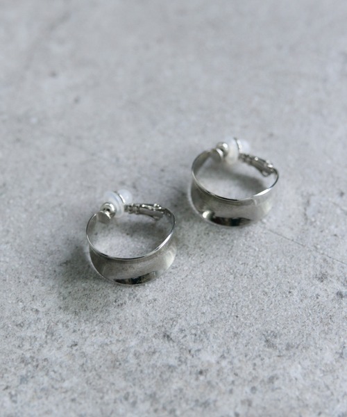 フープ型に仕上げたメタルイヤリングは、ニュアンス感のあるラインでこなれた印象に。