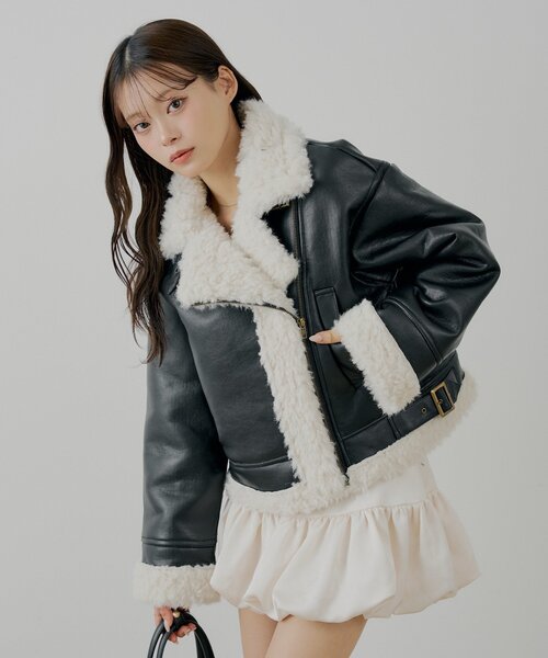 トレンド感たっぷりのボアレザーライダースジャケット登場!?商品ポイント・首元からフロント、袖口、裾にあしらわれたボアが、見た目にも暖かく、顔周りを華やかに演出してくれます。