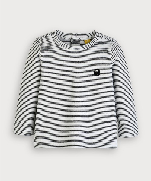 柔らかくて薄いのに暖かい生地を使用した先染めの細ボーダー柄の長袖Tシャツ。