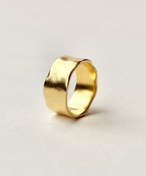 表面のゆるやかな凹凸が柔らかさを感じさせるリングは、冬のスタイルに自然に馴染むジュエリーです。