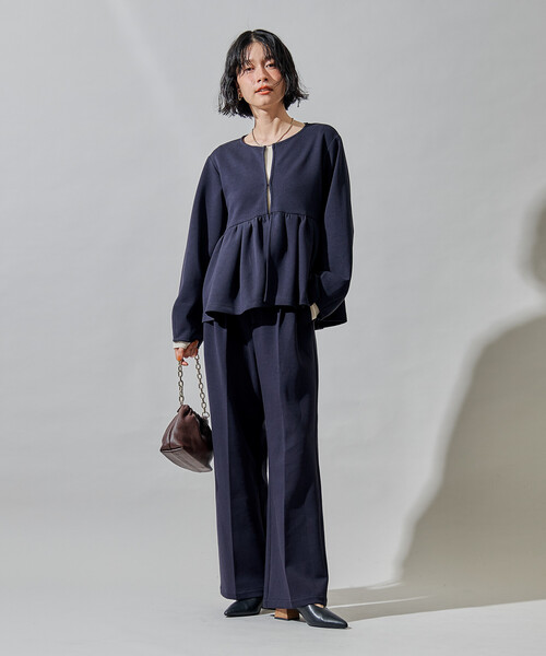 2025 Fall & Winter item女性らしさと快適さを兼ね備えた、上品ペプラムセットアップ●滑らかで弾力のある肌触りが魅力のダンボール素材を使用