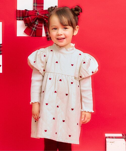 tiny bearの総柄がアクセントになったクリスマスにおすすめのワンピース。