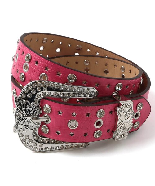 ビジューのバックルがデザインポイントのベルト。