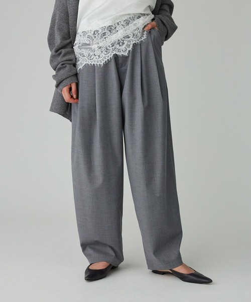 ・深めのタックでボリューム感がありながら、素材の落ち感で程よいボリュームになるよう設計。