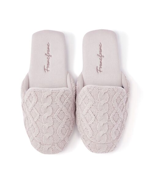 ケーブル模様のニットが可愛らしいルームシューズです。