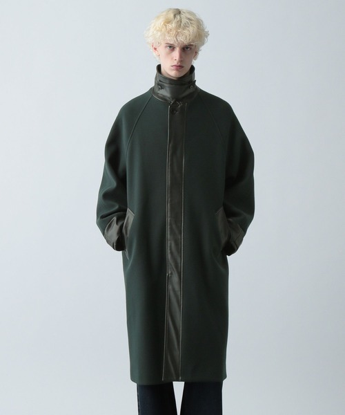 フェイクレザーでボディを切り替えたモードなステンカラーコート