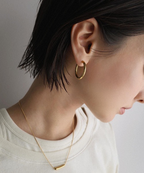 程良いサイズで存在感を放つシンプルなフープピアス。
