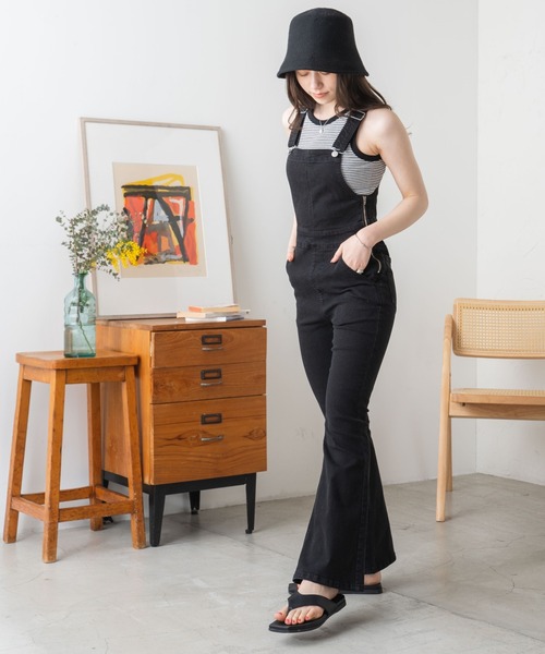 参考商品名:WEGO/ハイウエストストレッチフレアデニムサロペット