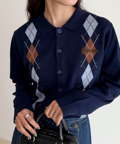 トラディショナルなアーガイル柄が映えるニットカーディガン