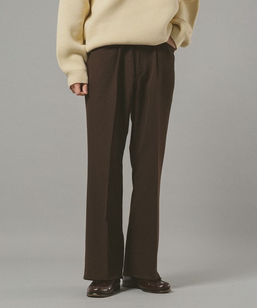 シャープなシルエットで仕上げたきれいめなフレアパンツ。