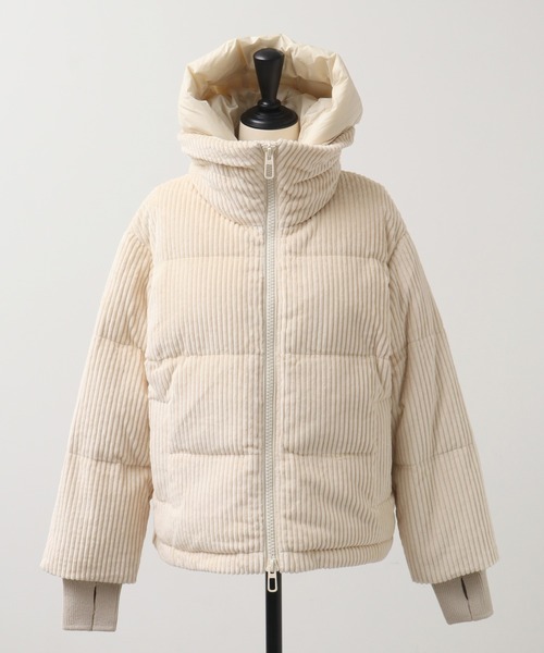 ワイドコーデュロイ素材を用いたショート丈のダウンジャケット “LORA TURES”。