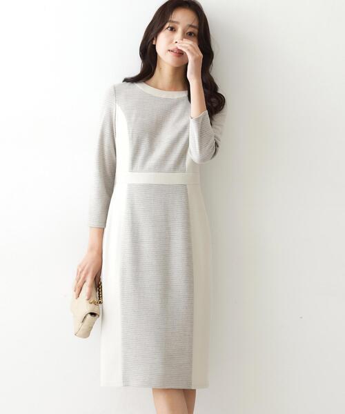ジオメトリック柄ジャカードジャージ素材のIラインワンピースです。