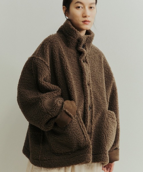 ・フェイクムートン面の袖口や袖にはボアを縁取りアクセントに