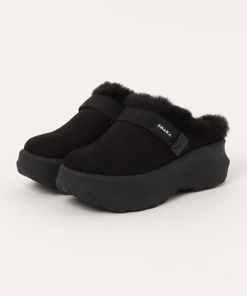SNUG BOA MULE GES CHUNKYシープスキンルックのムートン風厚底ミュールサンダル。アッパーは合成繊維、ライニングはポリエステルファーで見た目にも温かい一足。プレーントゥでシンプルなデザインだが履き口にファーをあしらい女子力高めの可愛いルックス。アウトソールはGES CHUNKY ソールで、厚底で軽量かつクッションが高く、流線型のデザインが特徴的です。定番的なアッパーとテックなデザインの厚底のアウトソールを融合させたSHAKA(シャカ)らしい一足に仕上がりました。