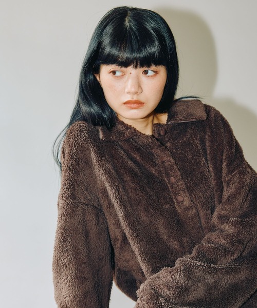見るからに暖かさを感じるファーリーなボアのポロトップス。