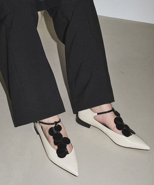 エッジを効かせたポインテッドトゥと動きのあるディテールで、足元に華やかさを演出してくれる1足です。