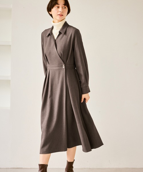 ・シャツ衿ですっきりと綺麗見え、ウエストもシェイプされて1枚で着映える。