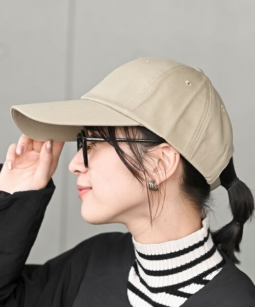 長めのつばは紫外線からも守ってくれて、小顔効果にも◎。