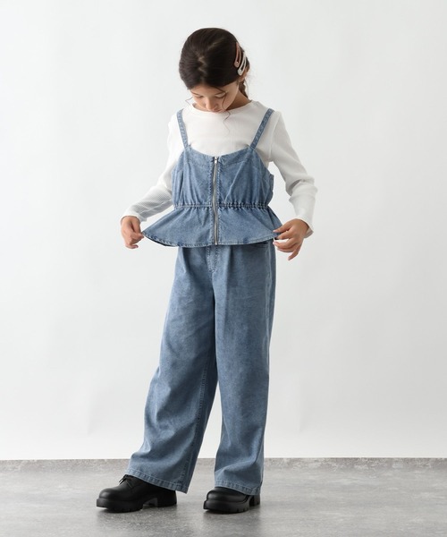 ビスチェとパンツはしっかりとしたデニム素材を使用し、加工感による表情豊かな仕上がりが魅力。
