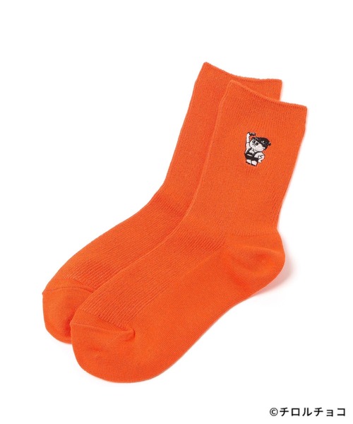 チロル坊やが刺繍されたソックスです。ベーシックカラーから挿し色になるオレンジカラーのご用意!ボトムスからちらっと見せるのがおすすめです♪