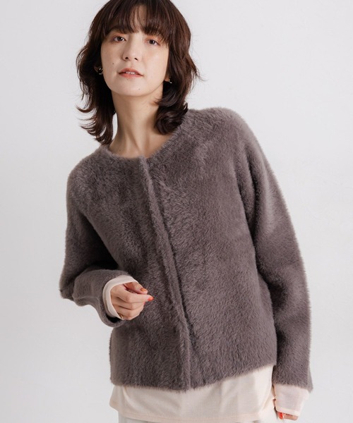 5ゲージで作成されたミニフェザーヤーンのニットジャケット。