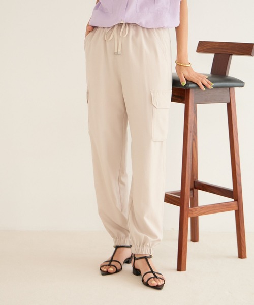 キーワード:カーゴパンツ レディース ウエストゴム ハイウエスト フルレングス 無地