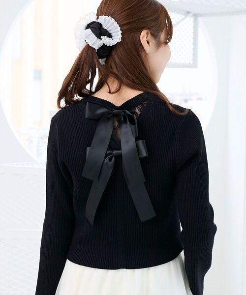 背中の大きなリボンがアクセントになったクルーネックカーディガン。
