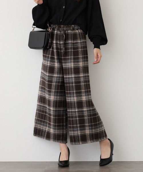 秋冬のクラシカルスタイルに タータンチェック柄が映えるロービング起毛ツイードワイドパンツ