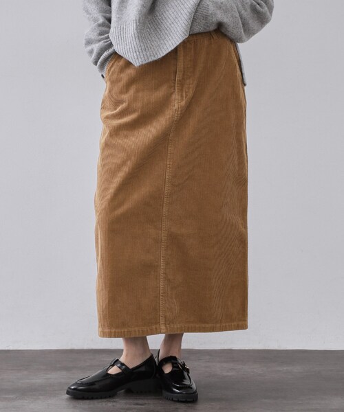 ・すっきりとしたシルエットが、スタイリッシュに着こなせるコーデュロイのナロースカート。
