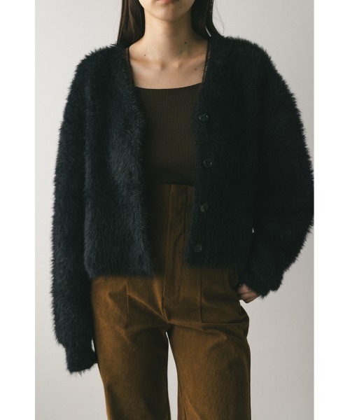 暖かさとふんわりとした柔らかい肌触りを叶えるシャギーの毛足が可愛いアウターライクなニットカーディガン。