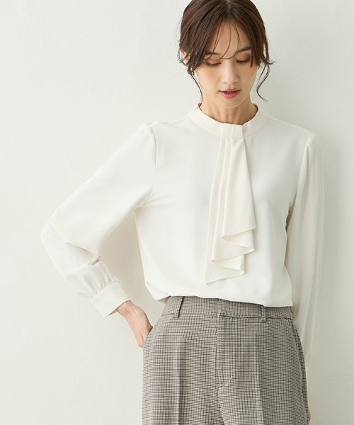 ふっくらと柔らかい質感に仕上げた定番のボウタイブラウス。
