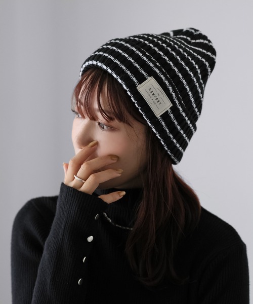 伸縮性のあるリブ編みで仕立てられており、頭にやさしくフィットしながらも程よいボリューム感を演出します。