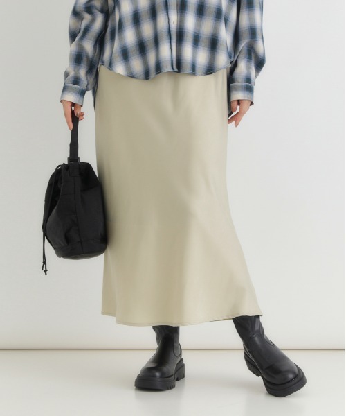 一枚で“艶”も“細見え”も。上品サテンのIラインで、日常をエレガントに格上げ。