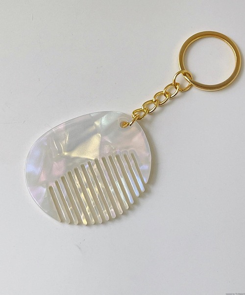 べっ甲風デザインが上品な印象のコームモチーフキーホルダー。
