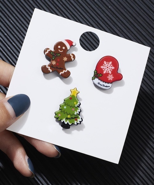 クリスマスモチーフのピンバッジ3個セット