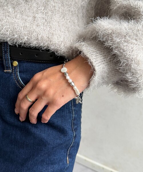 手元に洗練された印象を与えてくれるブレスレット■pointチェーンとパールのモチーフが手元をオシャレに見せてくれます。